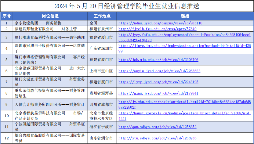下一篇:2024年5月13日经济管理学院毕业生就业信息推送