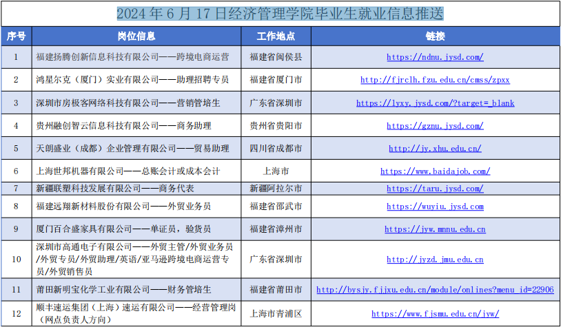 下一篇:2024年6月11日经济管理学院毕业生就业信息推送