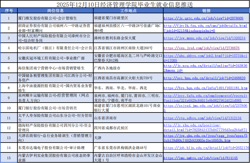 2025年12月10日经济管理学院毕业生就业信息推送