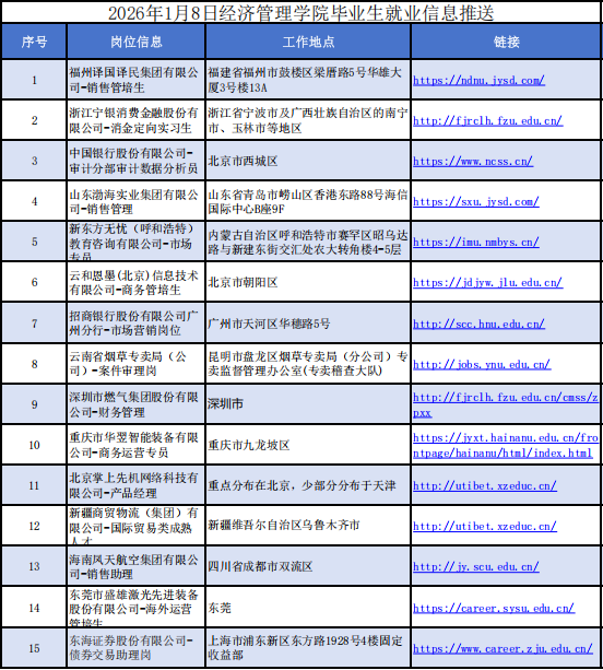 2026年1月8日经济管理学院毕业生就业信息推送
